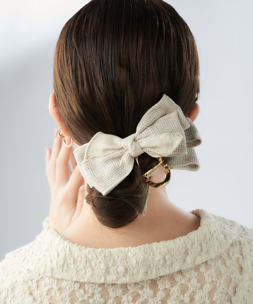 立体感のある大ぶりのリボンが目を引く、上品でクラシカルなバンスクリップ。
