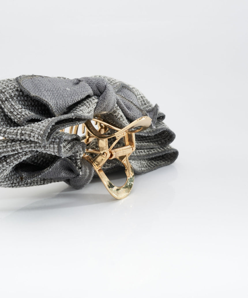 ゴールドのクリップ部分がアクセントになり、さっとまとめるだけで洗練されたヘアスタイルに仕上がります。