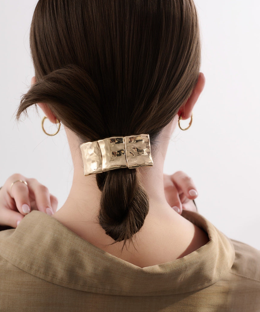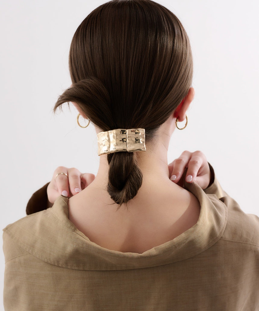 程よい厚みと存在感のあるデザインで、ひとつ結びやローポニーが一気にこなれて見えるアイテムです。