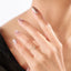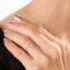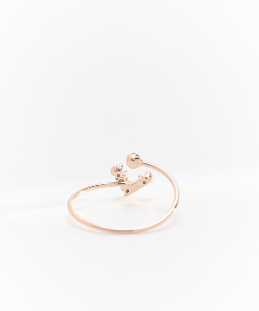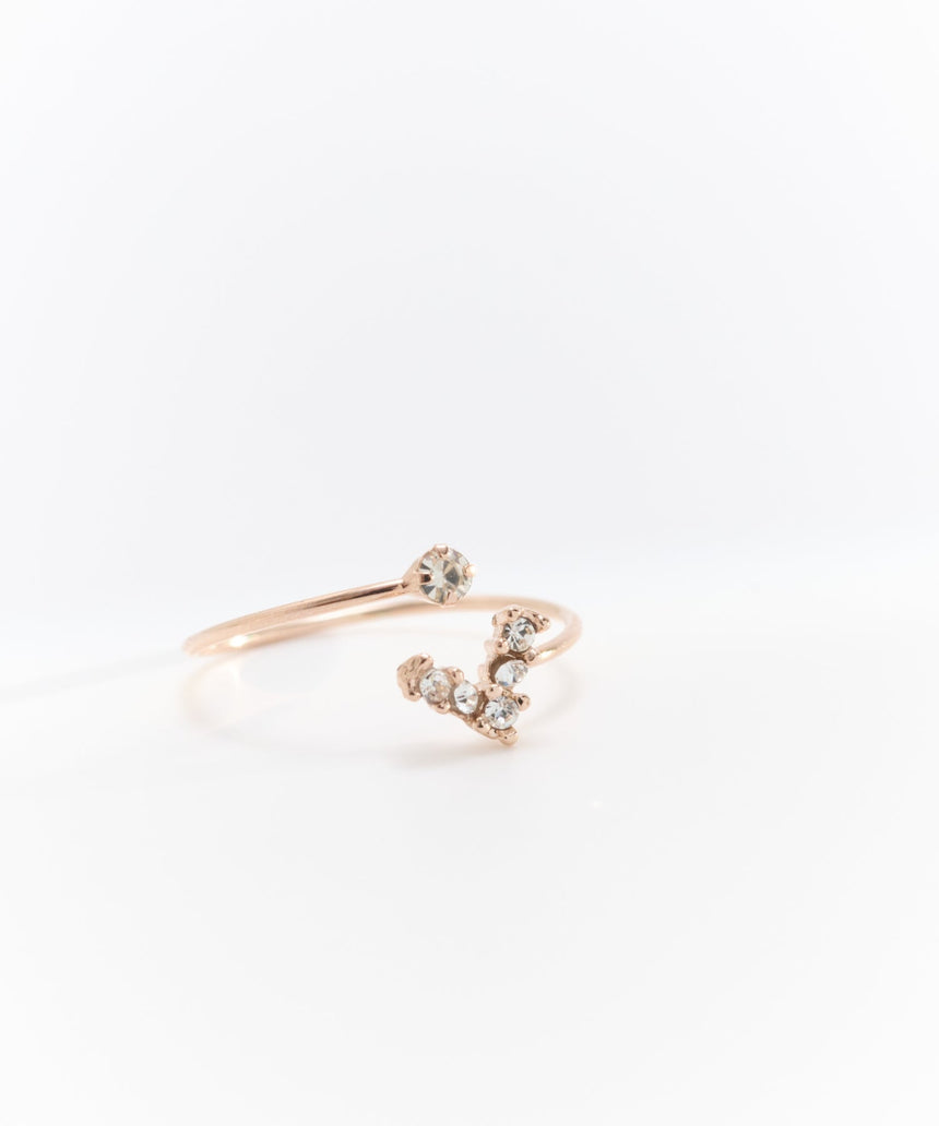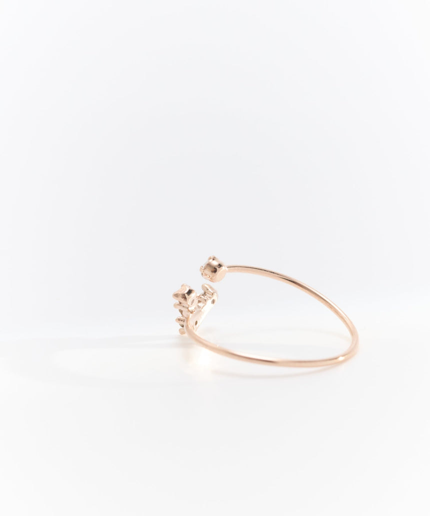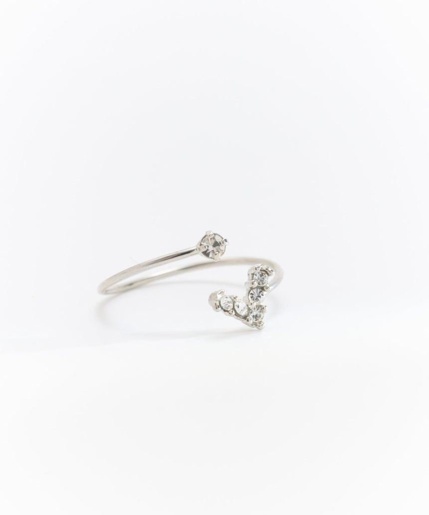 指先を美しく見せるVライン状に連なる小さなストーンが、華奢ながらも印象的な輝きを添えるリング。