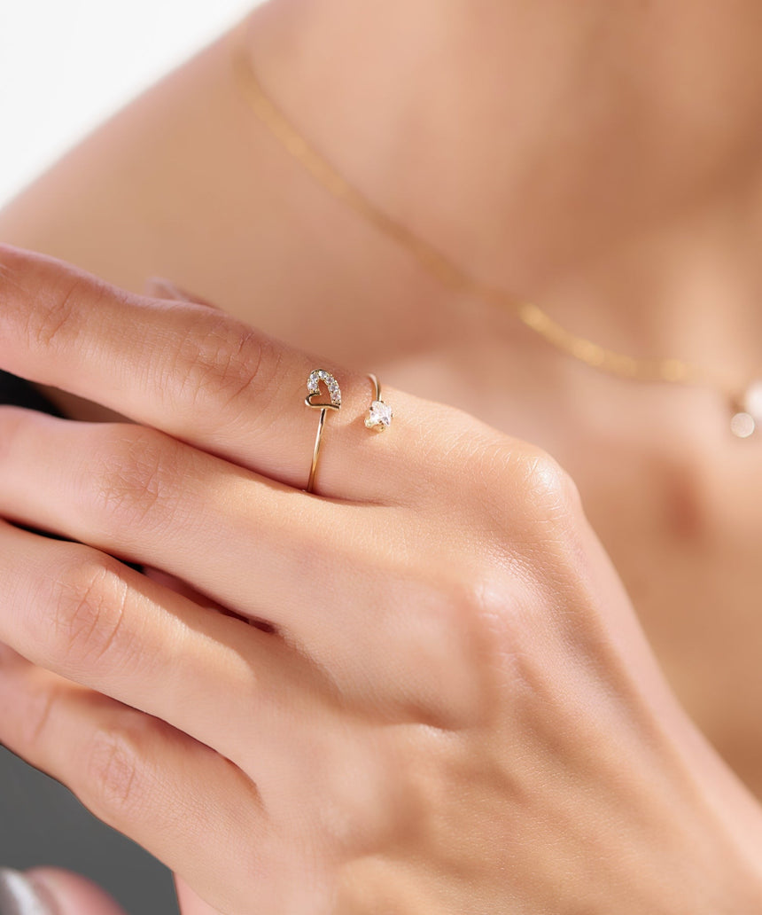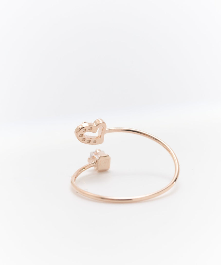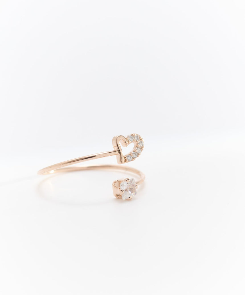 ラインストーンをあしらったハートモチーフが手元にさりげなく華やかさを添え、ひと粒ストーンとのバランスも絶妙。