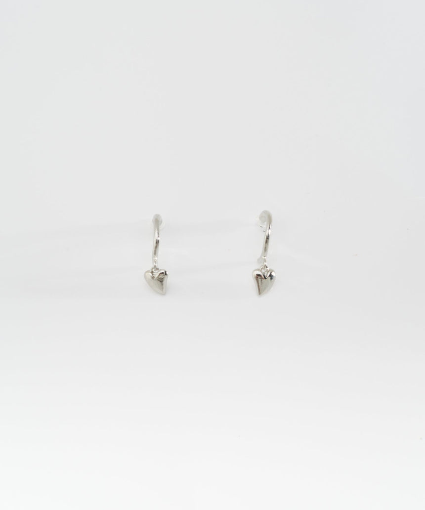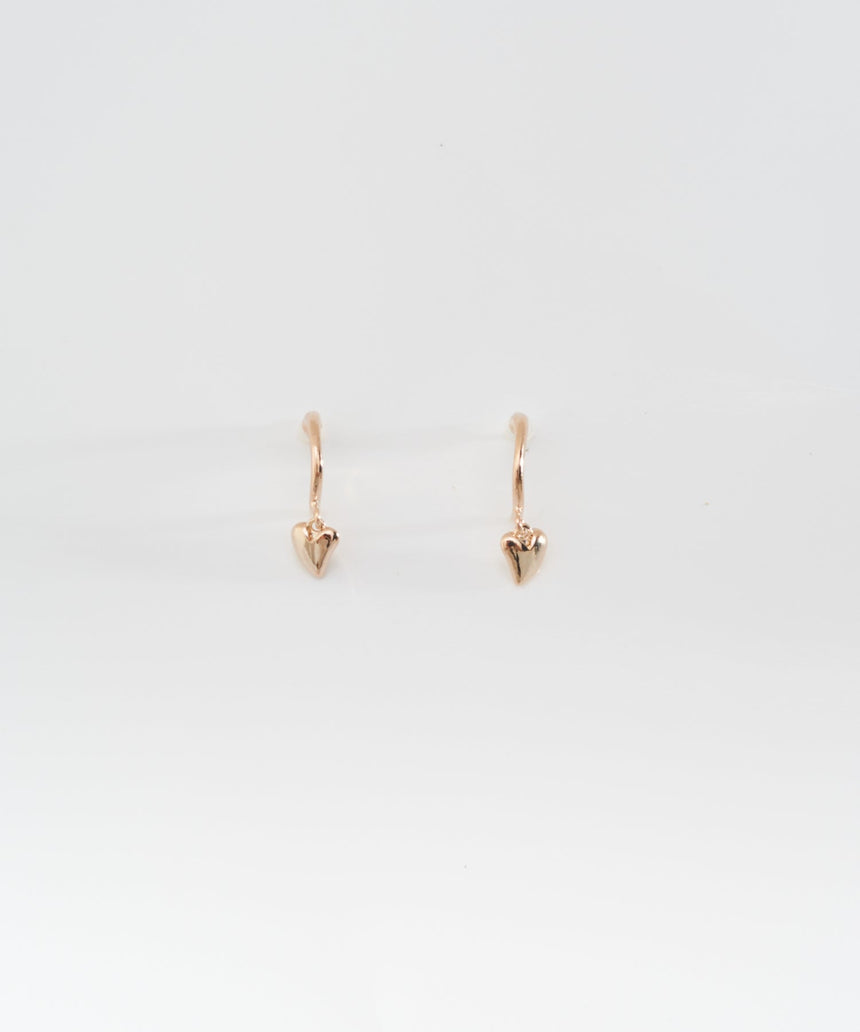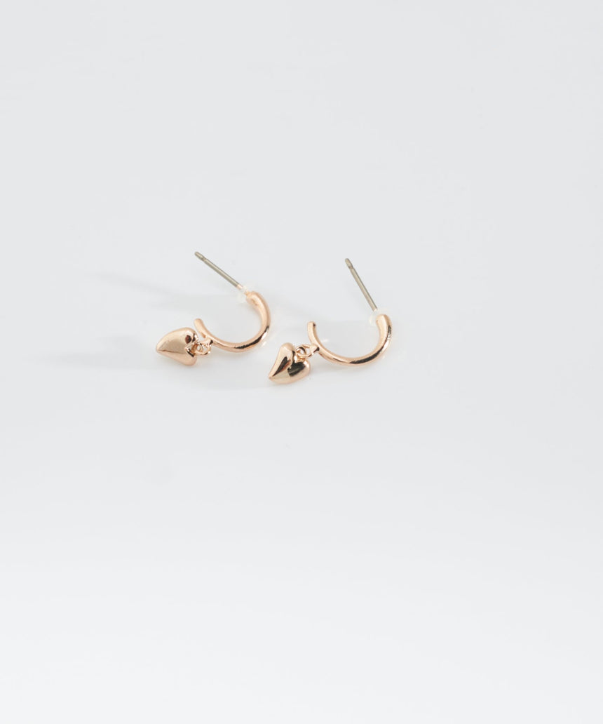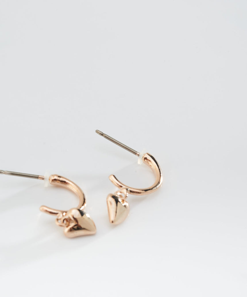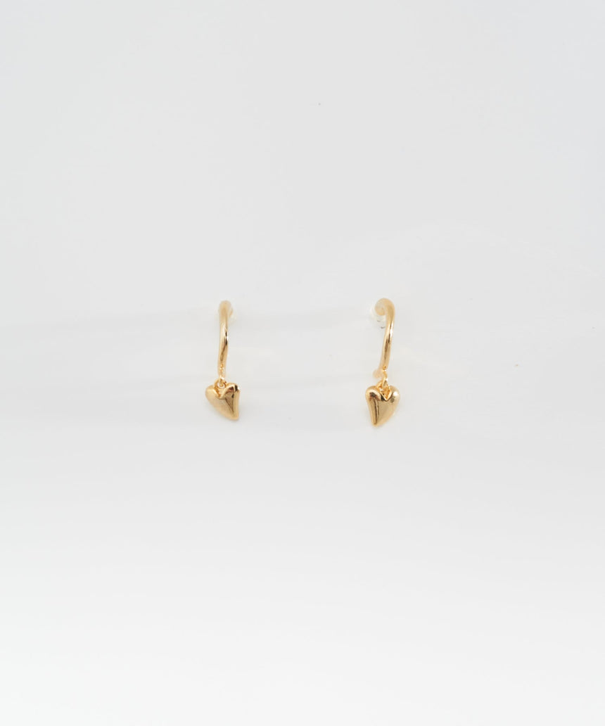 ぷっくりとしたハートチャームが揺れる、遊び心のある大人可愛いピアス。